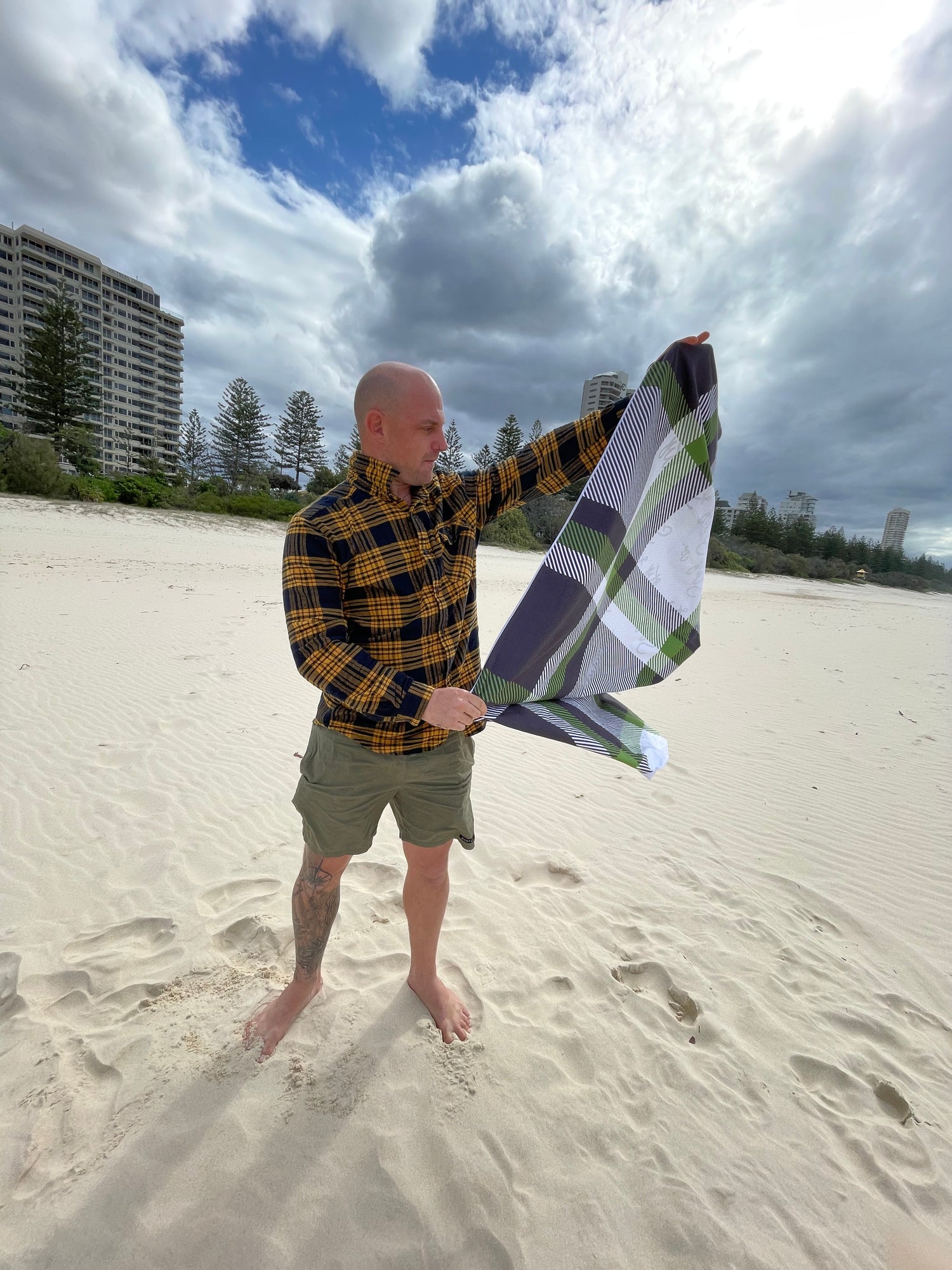 We've taken the iconic Aussie flanno and re-imagined it for sunny days by the shore. Embrace the laid-back charm and timeless style of the flanno, now in a beach towel that's both practical and stylish. Whether you're soaking up the sun on the Gold Coast or enjoying a beach-side barbecue with friends, our towels bring a touch of Aussie nostalgia to your summer adventures. Say hello to comfort, convenience, and a touch of homegrown flair with our flanno-patterned beach towels.